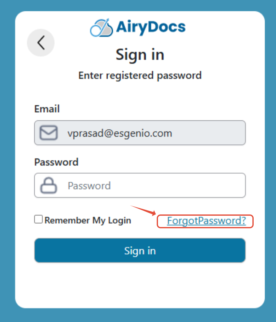 Follow these steps below to reset your airydocs portal password: